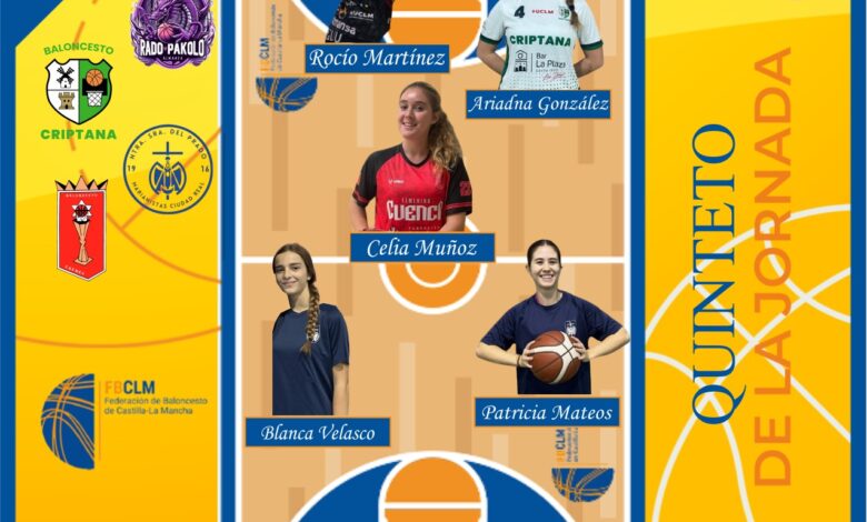 Le acompañan en este quinteto de honor las jugadoras Rocio Martínez del Rado Pakolo de Almansa, Celia Muñoz del CB Cuenca, Blanca Velasco y Patricia Mateos ambas jugadoras del Prado Marianistas de Ciudad Real.